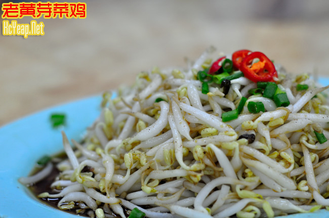 芽菜鸡当然不能少芽菜. 怡保芽菜之美, 在于其肥美多汁及脆口, 也因此使怡保芽菜闻名全马. 怡保芽菜来自文冬新村, 只有文冬新村井水能够栽種出又肥又多汁的芽菜. 一条约2寸长的芽菜抛入滚水中烫一烫, 捞起后加入酱油, 麻油和青葱, 就是一碟碟令人垂涎欲滴的怡保美食 :).