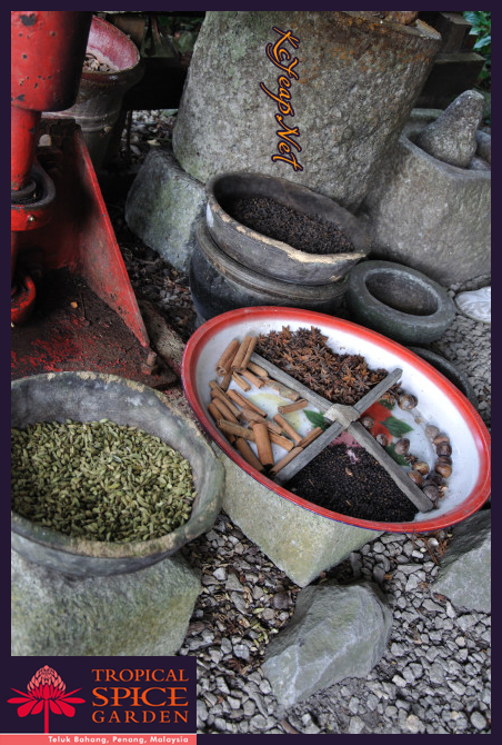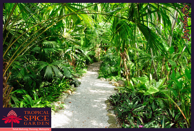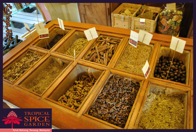 槟城有个香料花园, Tropical Spice Garden热带香料园展示了香料的奇妙世界. 位于直落巴港(Teluk Bahang)的热带香料园, 置于溪流和瀑布之间宛如世外桃源, 游客可在此欣赏香料的本来面目. 热带香料园本来是一幢英国人拥有的别墅, 为了不破坏自然, 园内建筑取用废弃老屋完好的建材加以利用, 搭建出别具风情的景观.