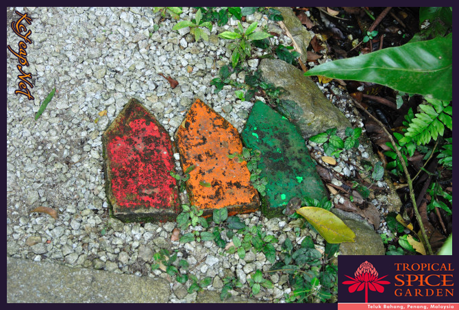 想漫步完成Tropical Spice Garden热带香料园, 你只需要跟随热带香料园路线标则可, 不同的颜色代表不同的步道, 路线标有三种颜色.
